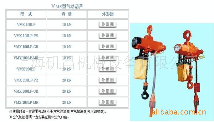 1、链条式气动葫芦VMX型(250KG-1000KG)