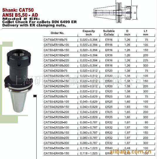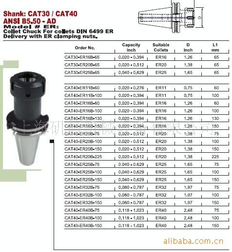CAT30,40,50-ER筒夹式刀柄系列订购电话021-59762076/13918399448 传真021-59763460上海矶昌机械设备有限公司供应ELABORTE高精度动平衡加工中心刀柄,ELABORTE数控刀杆/刀把,全系列产品动平衡G6.3/12000RPM校正,G2.5/20000RPM校正。