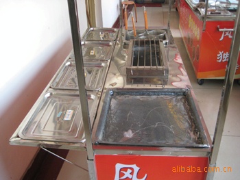 ●两功能小吃车可同时做麻辣烫和油炸小吃、烧烤和铁板烧技术,总之任意两种小吃组合变换,可根据您的需要要订做。