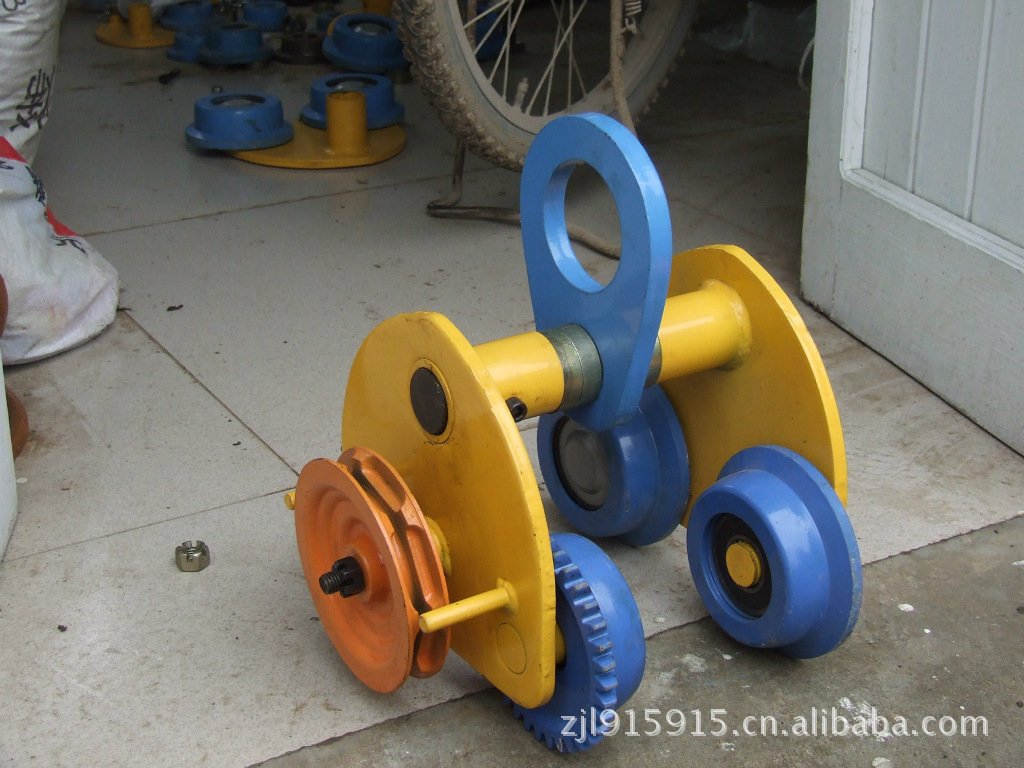 单轨小车用途:手拉单轨行车以手链驱动,行走于工字钢的轨道下缘处,配以手拉葫芦便可组成桥式、单梁或悬臂式起重机。