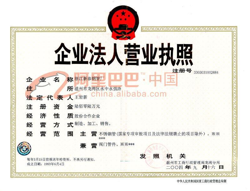 浙江新泰钢管厂(原瓯海钢管五厂、温州新洲不锈钢制造厂)是一家专业生产各种不同规格的不锈钢管,不锈钢方管,不锈钢无缝管,不锈钢镜面管的企业。我厂拥有8条不锈钢无缝管全自动生产线,2座全自动固溶处理炉,年生产量上10000吨。同时具备化学分析室、万能试验机、超声波探伤、涡流探伤、水压试验机、光谱仪等检测设备,是国内生产和检测设备齐全单位之一。