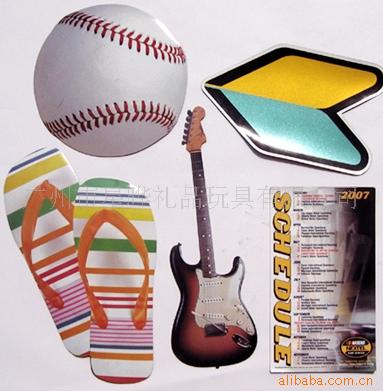 1)磁性冰箱贴:采用下面软胶磁铁+上面铜版纸彩色印刷腹膜制作而成。
