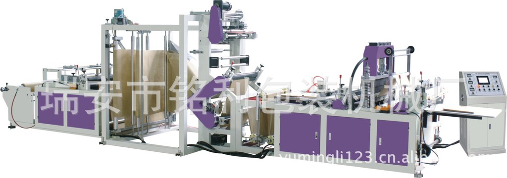 1.该机适用原材料为无纺布,能加工各种不同规格,不同型状的无纺布袋,平口袋,手提袋,背心袋,穿绳袋等该机集机电为一体,运用LCD触摸屏操作。配以步进步式定长,光电跟踪,电脑自动定位,电脑自动纠边,准确,平稳。自动计数即可设定计数报警,自动打孔等工控装置,使其生产的成品封线牢固,切线美观。高速效,是你可以放心适用的优质环保型制袋设备。
