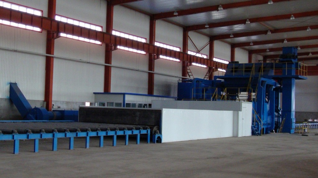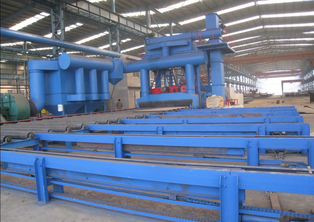钢材预处理线是用来对钢板、型钢的表面进行预热、抛丸除锈、喷漆、烘干的全自动、高性能的流水作业生产线。主要用于钢板、型钢表面清除氧化皮、除锈、喷涂保养底漆,以增强其抗腐防锈能力,强化表面质量,提高表面硬度,同时消除钢材的内部应力,从而提高钢结构产品的质量,增强其抗腐能力,延长其使用寿命。