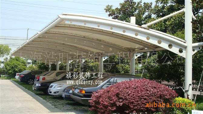上海旗彩装饰工程有限公司子公司上海浩旺装饰工程有限公司专业制作车棚系列:膜结构车棚\膜结构工程\膜结构加工\膜结构工程安装\钢结构膜结构加工制造\膜材料供应加工\永久膜供应等,可来料加工\来样加工\安装\焊接等,款式只要你能想到,我们就能做到.