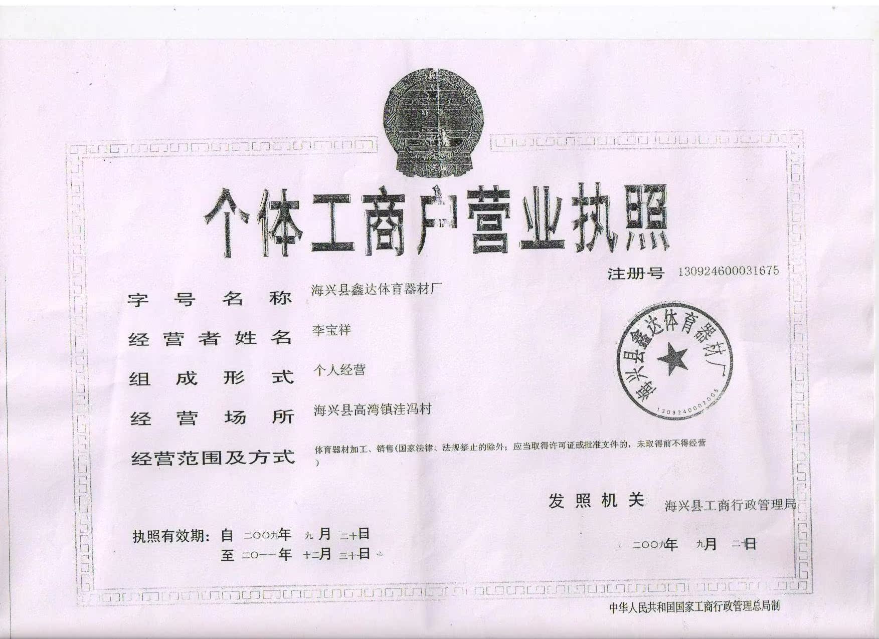 户名.海兴县鑫达体育器材厂.