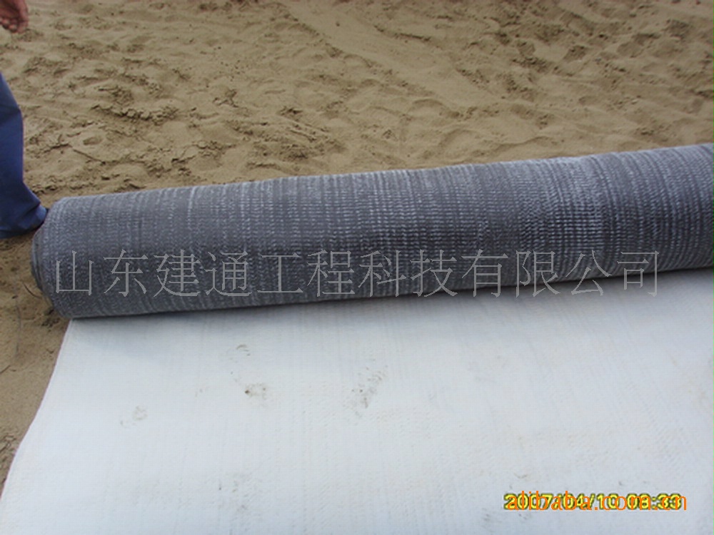 膨润土防水毯是采用一种专利的针刺法将含高钠质抗污染膨润土均匀地织在两层聚丙烯强力纤维织物中,高钠质膨润土具有特强膨胀特性,在受局限的情况下遇水膨胀形成一层无缝高密度浆状体,能有效地隔绝水的入侵。