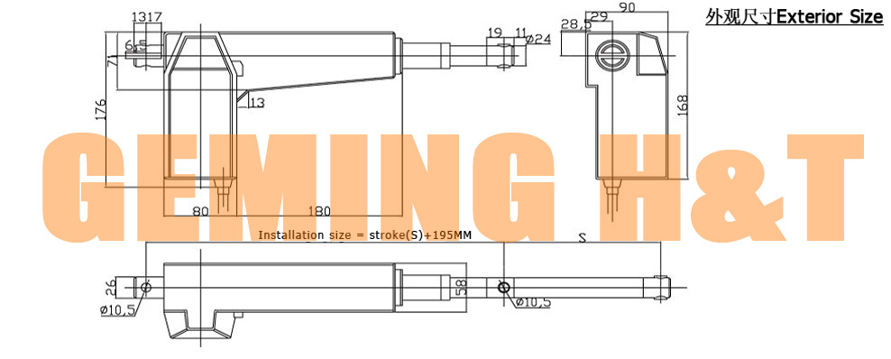3)标准行程:100、150、200、250、300、350、400毫米(可选)