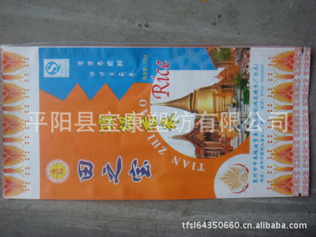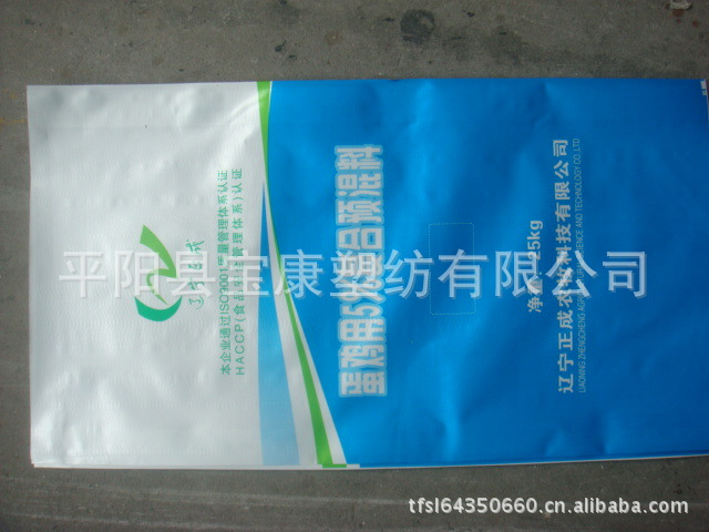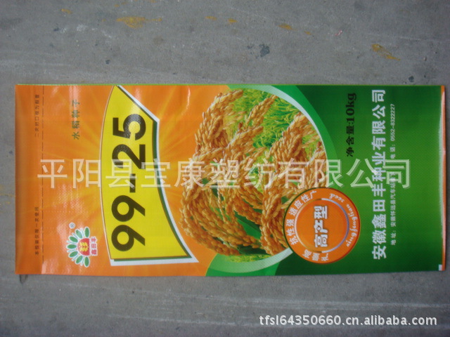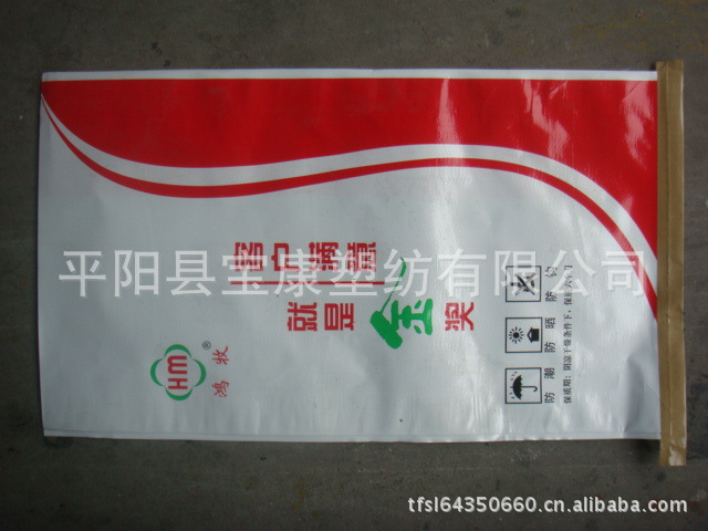 平阳县宝康塑纺有限公司是专业生产各种彩印包装袋(珠光膜.亚光膜.镭射膜.镀铝.金.银色)适用于面粉.饲料.大米.食品.种子.腻子粉.化工.洗衣粉.建材.医药.棉花.矿粉等外包装.制袋技术已有二十多年了。本公司引进最先进的生产设备提供最优质的服务...本公司实力雄厚,以“质量第一、顾客至上、诚实守信”,严格把握产品质量,薄利多销的原则.欢迎广大客户来电来公司考察订购。联系人:高泉孩 手机13958928877 qq:57262600