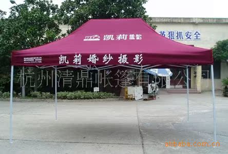 杭州清鼎帐篷有限公司生产的折叠式四角广告帐篷(又称易开合折叠帐篷)。使用方便轻巧规格齐全、特制规格可定制、骨架采用方管制作、表面喷塑加工、蓬面涂层、防水涂层、防水抗老化处理。1分钟内完成安装、轻巧耐用、特制面料耐用易洁、规格齐全、多种颜色、代印广告。携带方便,收起时可放在小汽车尾箱内,休闲惬意,价格优惠、欢迎惠顾。布料:210D、420D、600D牛津布。