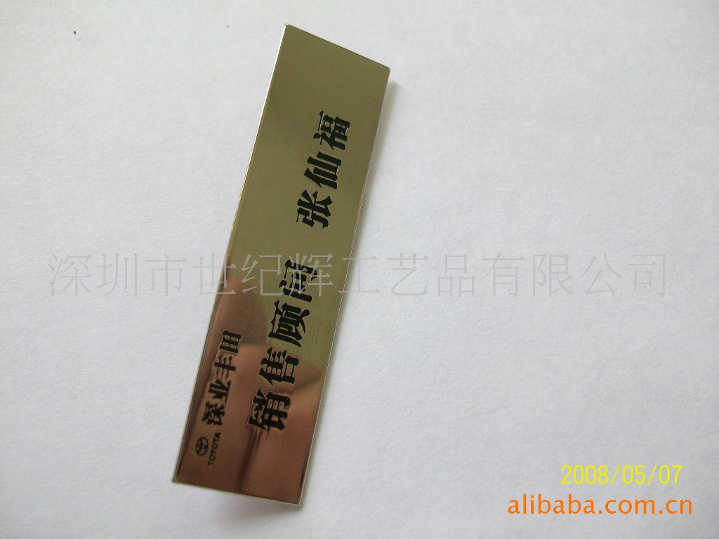 本厂坐落于深圳市坪山新区,拥有标准厂房及专业技术骨干队伍,先进的设备,具有丰富的证章、徽章制造经验。是一家集开模,设计,生产于一体的生产厂家,可以满足世界各地不同客户的需求.本厂专业生产五金工艺礼品,如金属徽章,纪念章,挂包器,勋章,奖章,奖牌,奖杯,标牌,工号牌,铭牌,门牌,狗牌,领带夹,袖扣,帽夹,书签,开瓶器,球叉,钥匙扣,手机吊饰及PVC软胶等等一系列产品,欢迎广大客户来图来样订做,谢谢。