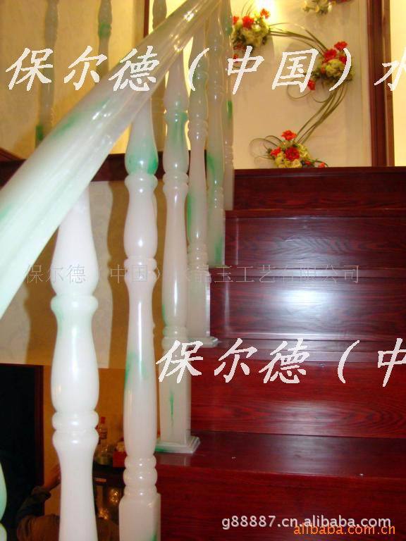 二.合成玛瑙玉石楼梯扶手以其独特的风格、亮丽的光泽、造型的美观、高贵典雅的品位代替了古老的木制和金属制品的楼梯扶手,...我们的产品有:仿玉(墨绿)、(翠绿)、仿玛瑙(红)、仿汉白玉(白)、仿琉璃(黄)、等多种颜色