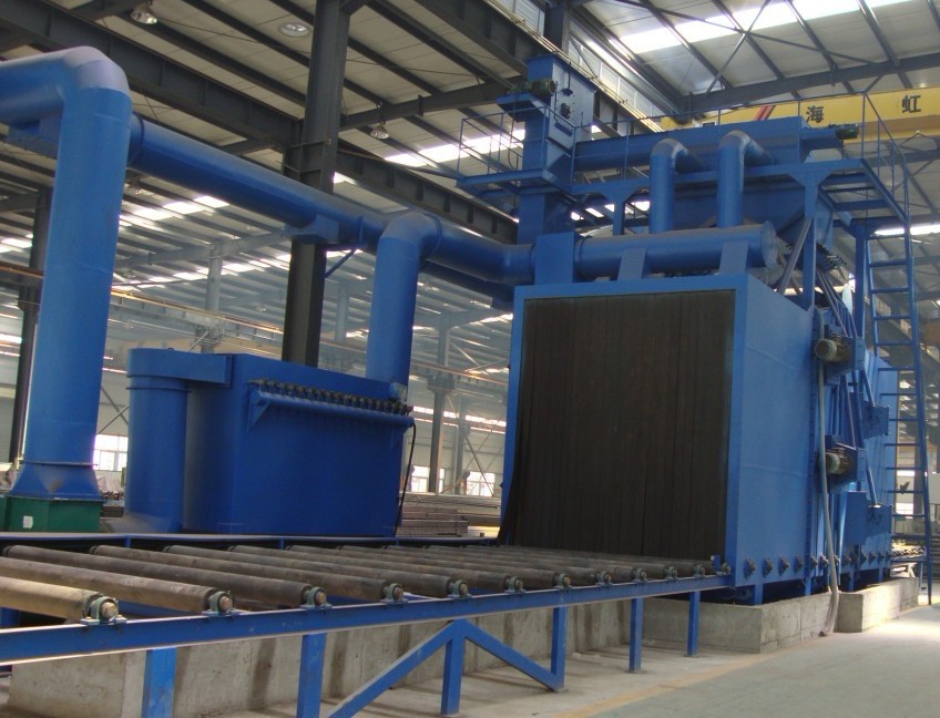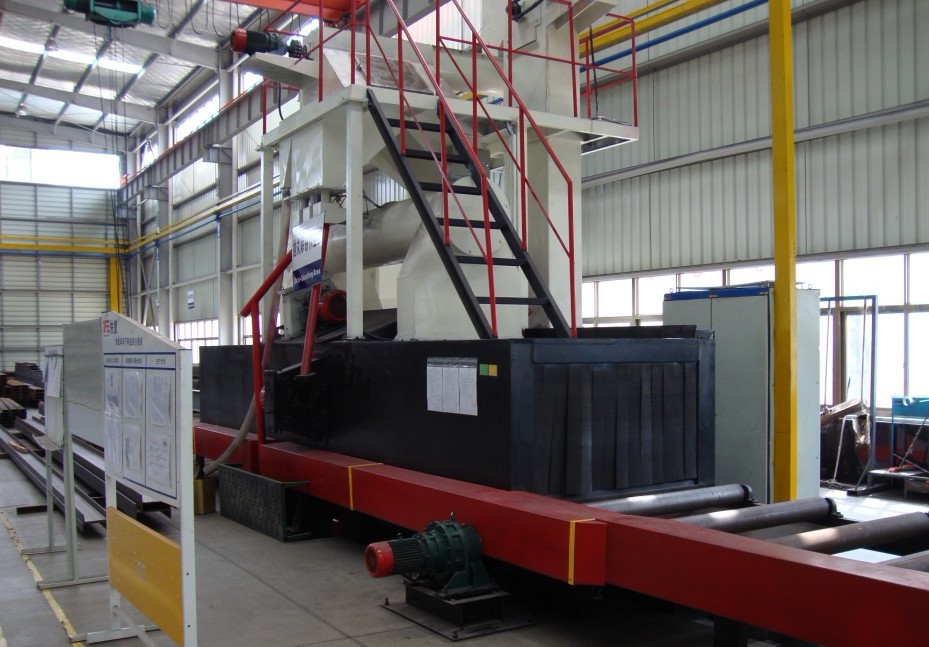 钢材预处理线是用来对钢板、型钢的表面进行预热、抛丸除锈、喷漆、烘干的全自动、高性能的流水作业生产线。主要用于钢板、型钢表面清除氧化皮、除锈、喷涂保养底漆,以增强其抗腐防锈能力,强化表面质量,提高表面硬度,同时消除钢材的内部应力,从而提高钢结构产品的质量,增强其抗腐能力,延长其使用寿命。