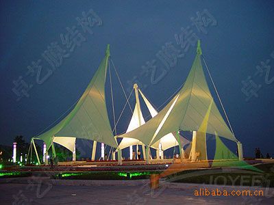 层,使永久性的PTFE膜正式诞生。此后永久性膜结构正式在美国风行,许多学者对膜结构进行了深入的研究。20年后跟踪检测结果表明,这种膜材的力学性能与化学稳定性指标只下降了20%~30%,颜色也几乎没变,膜的表层光滑,具有弹性,大气中的灰尘、化学物质微粒极难附着与渗透,经雨水冲刷建筑膜可恢复其原有的清洁面层与透光性,这足以显示出PTFE膜材的强大生命力和广阔的市场前景。 目前国外对这种膜材的开发和应用比较成熟,生产厂家也很多,如德国Mehler公司、Verseidag公司,日本Taiyoko-gyo公司、中兴化成工业株式会社、美国Chemfab公司、沙特阿拉伯ObeiKan公司等。