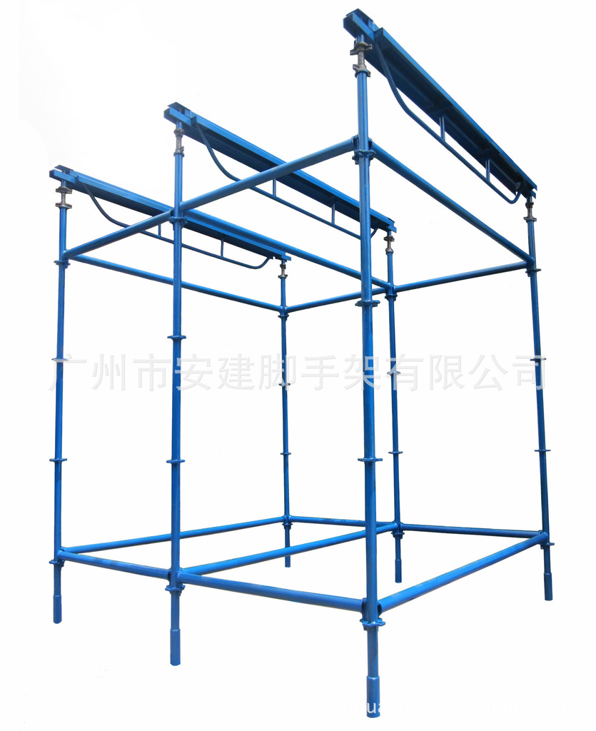 安建轮扣式多功能脚手架 技术先进的承插式钢管脚手架-AJ轮扣式多功能脚手架,已广泛应用于楼宇建筑、桥梁、隧道、地道桥、水塔、大跨度架棚等建筑。 深受施工单位欢迎。 具有以下特点: 多功能:能组成单、双排脚手架、模板支撑架、支撑柱、特料提升架、爬升脚手架、悬挑脚手架等。 高功效:街头拼拆避免了螺栓作业,可降低劳动强度0.5倍以上。拼架速度比常规快五倍以上。 承载力大:街头具有可靠的抗弯、抗剪、抗扭力学性能,结构稳固可靠。故整架稳定强度比常规提高0.5倍。 安全可靠:街头自锁能力强,构件系列标准化,使用安全可靠。 便于管理:产品系列化,日常维护简单,堆放整齐,便于现场材料管理。运输紧凑方便。