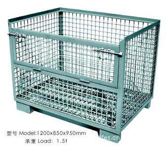 我公司专业制作各种尺寸的固定式重型网箱,也叫方管笼、角钢笼,可以办开门,立柱用50*50方管或角钢,底脚高100mm,底角用4.0冷板折弯而成,网片线径6.0mm,网格50*50,承重2000kg以上,可堆高,不能折叠。表面喷漆或喷粉。