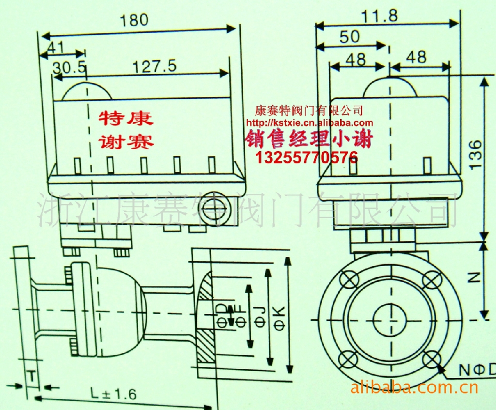 具体尺寸图,可参考康赛特KST系列铝合金外壳的尺寸图:康赛特优质电动二片式法兰球阀Q941F
