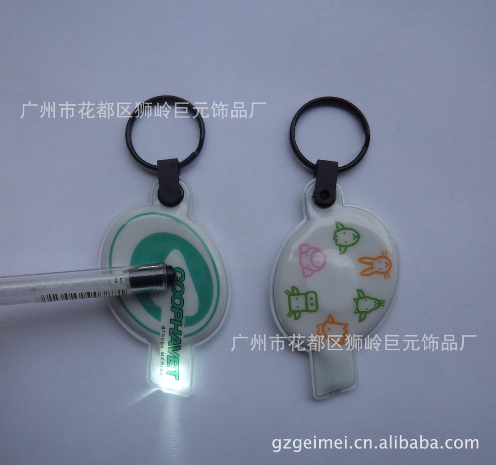 产品特点:可把企业的卡通形象、企业LOGO、企业产品等.印刷在PVC上,色彩更显艳丽、广告更显悦目、精致美观、效果多样,为企业促销宣传或赠品起到很好的营销效果。大家都知道现在做什么广告都需要派发小礼品,但礼品要求一定要实用这样才可以有保留广告的价值,所以PVC钥匙扣灯作为广告促销馈赠礼品还是个不错的选择,既是一种精美的小饰品,又是一个实用钥匙扣小夜灯,非常受消费者喜爱!
