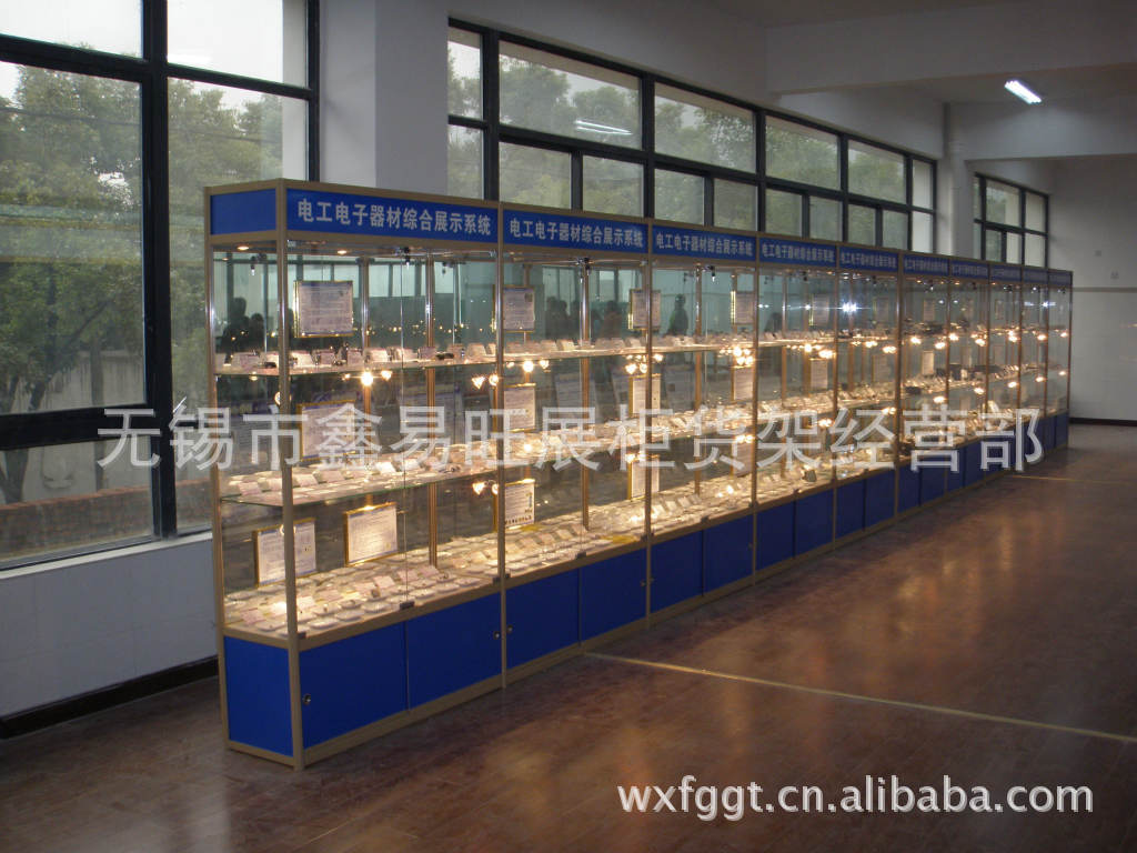 无锡市鑫易旺展柜货架(原无锡风格)成立于2002年,是集设计、生产、销售于一体的专业展柜制造批发商。以铝钛合金为主,玻璃、密度板为辅。不断进行产 品的开发与研究。并不断将研究成果应用于展柜货架的设计和制造,为各公司的产品推广起到了事半功倍的效果。 铝型材、连接件是本系统结构的基础,所以我公司严格按照国家通用标准采用最新的技术设备和工艺,组织生产、检验。为用户提供了可靠的品质保障。同时在研 发、生产时考虑到不同的用户在商场、展览会、办公现场装配的需要和特点。所以使用本系统结构将为你在各类安装中带来快速、灵活、轻松快捷的宽松施工条件本系统的型材及配件外观是经过我司多年经验设计而定的,适用于各种方案与风格,可制成单个及组合式不同高低的展柜。系统安装的工人不需要复杂的培训。安装的工具为六面体扳手,用来调节连接件和锁的松紧就可以。本系统连接件,可按照客户的具体设计要求装配处各种各样的商用展柜、柜台、玻璃柜、银行柜台及展览陈列柜等。本结构的器材及配件在展览装饰行业是很先进的一代产品。装配简单、便捷,而且极富造型。可充分展现陈列物品的价值和时代气息,同时在制作时较节省材料降低成本,故受到用户的广泛欢迎。