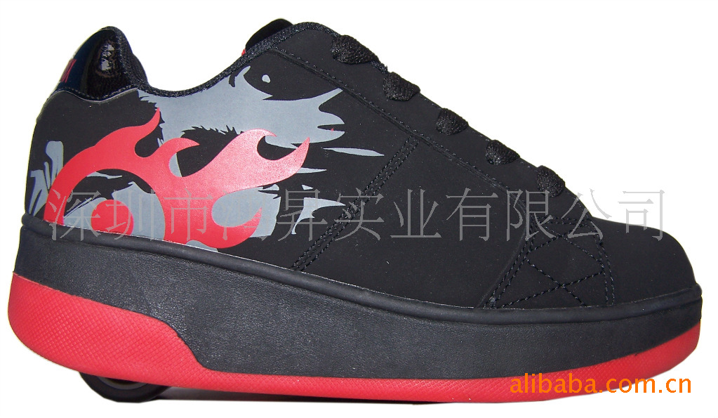 在成功推出了飞行鞋的同时,没有因此而停顿,我们发现在美国有一款滑轮鞋,它造型美国,使用方便,娱乐性极强,滑行安全,我们于是在99年开模生产出第一代滑轮鞋,此产品销往日本韩国之后,倍受青少年的追捧,它想滑就滑,想走就走的玩法,被称为“暴走鞋”,它的特点是:后跟一个轮子,穿着不会影响走路(它符合人体可以接受的正常高度),滑行时只要保持左右脚一前一后,轻抬脚尖,绷紧双腿即可滑行,想停下时,脚尖落地即可,它用单轮滑行,方向可以随意改变,步幅可以随意收发,节奏可以随意调节,如不喜欢带轮子走路,也可用手动拆下,用一盖板盖在鞋底凹槽上,此时和普通运动鞋无异。