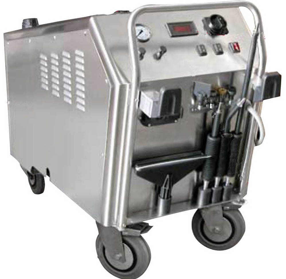 该清洗机采用轮式推拉结构,移动方便,操作简单,且出水温度在70