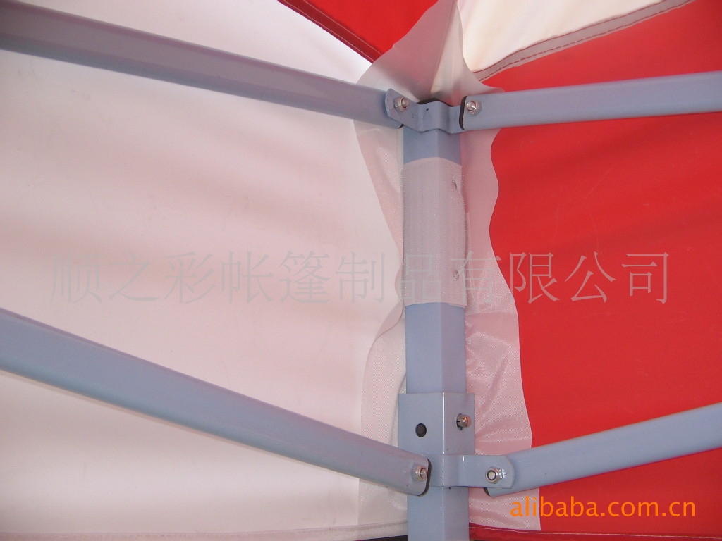 1.所有产品采用进口双针车缝合,外观具有菱角感、立体感、抗风能力更强、更牢固耐用。 2.在帐篷的四个角上车有1个吊扣,其功能1:是美观,2:是方便绳索拉住沙袋或地钉,防止大风对帐篷造成损坏,起防风作用。3.每个产品吊边的中间有1个邦绳子来订位,用来固帐篷布顶与帐篷架使用产品更加美观4.在帐篷的顶内部车有1层衬布,双层顶更耐磨、更耐用。5.我们公司生产的帐篷顶杆高是1米,没有省布料、更好看、使用时间长了也不会出现装水的现象,吊边足32公分,吊边可以做直边或波浪型。