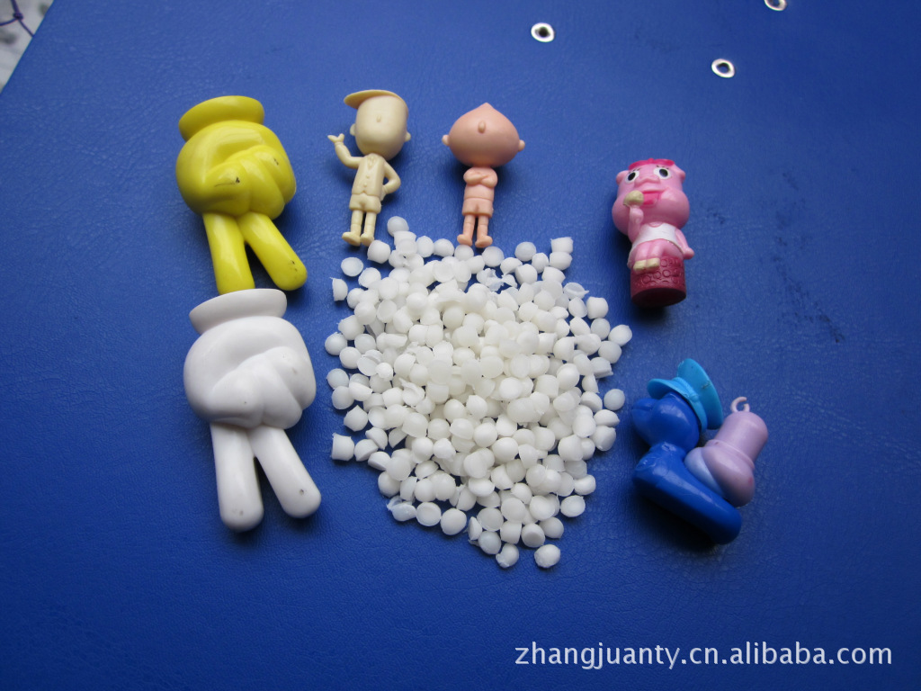 此粒子环保无毒,用于玩具配件挂件(挂件娃娃,水果挂件,拖鞋挂件等)等的注塑,也可以用于同等要求的产品的加工生产。