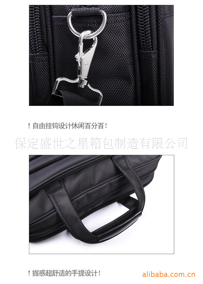 【内部结构】包包主袋拉链封口,内部一个电脑袋,一个夹层袋,两个外拉链袋,两个敞口袋