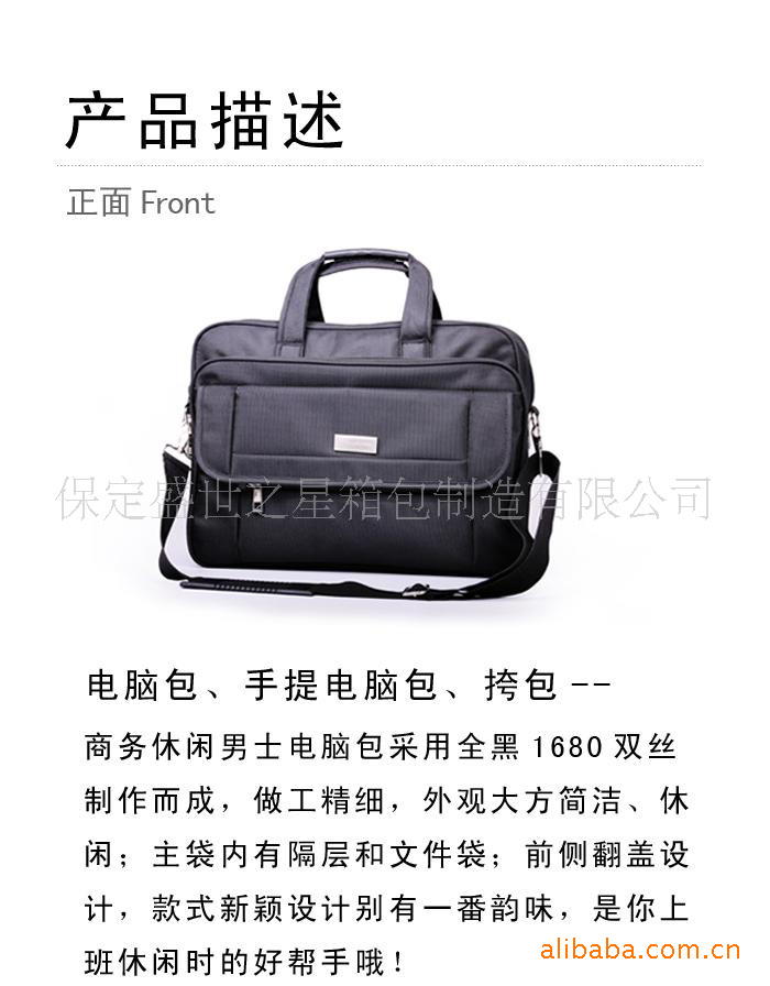 【内部结构】包包主袋拉链封口,内部为隔层电脑袋及文件袋