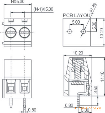 间距:5.00/7.50mm; 额定线径:24-12AWG; 力矩:4kgf.cm; 额定负载:300V/16A; 耐电压:4KV; 剥线长度:6.00-7.0mm; 绝缘外壳:PA66 V-0; 端子:黄铜 镀锡; 使用温度:-40℃~105℃; PCB孔尺寸:φ1.4; 位数:2-24P;