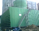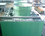 本系列横流式玻璃钢冷却塔采用两侧进风,靠顶部的风机,使空气经由塔两侧的填料,与热水进行介质交换,湿热空气再排向塔外。填料采用两面有凸点的点波片,通过安装头使点波片粘结成整体,以提高刚性,两面的凸点还可避免直接滴水,因此提高了水膜形成能力,填料尾部设有收水措施。 产品特长: 1、节省空间,结构轻型化 采用专为本系列冷却塔设计的高效热交换填料,其换热面积大幅度提高,与原HBLD系列及原HBLCD系列相比,其占地面积大幅度下降,由于结构设计的优化及采用钢结构,运转重量也大大降低。 2、节省电力 采用通风阻力小的填料和由清华大学专为冷却塔设计的机翼型玻璃钢高效风机,从而减小所配用的电机功率,超低噪声型采用的电机功率更小,更节省电力,也可根据用户的要求,配用双速电机来节电。 3、运转噪声极低 采用清华大学专为冷却塔而设计的FRP材质的机翼低噪声轴流式风机和专为冷却塔而设计的低噪声电机,从而降低了冷却塔的运转噪声。超低噪声系列冷却塔的运转噪声更低,全面符合环保要求。若配用双速电机,在夜间低速运行时,还能使噪声再下降2-3dB(A),用户需要双速电机应在订货时单独提出要求。 4、良好的耐腐蚀性 塔体、水槽及面板均采用具有良好耐腐蚀性能的FRP材质,并在胶衣树脂中加有光稳定剂,具有良好的抗老化性能,经久不变色。塔体钢结构件在加工后采用镀锌处理,提高冷却塔的耐腐蚀性能,在正常使用寿命内,不需另外防腐。 5、组合方便 可采用组合方式来满足不同工况的要求,用户也可根据场地情况进行决定组合,并可根据用户的建筑物特点,调整冷却塔的外观。如用户场地十分有限。我公司也可针对用户的特殊要求进行设计,满足用户对热力性能及噪声的要求。 6、维护方便 本系列冷却塔为组合式设计,相邻冷却塔空气室相互隔开,可在冷却塔正常运转的前提下,进行维护检修,清洗填料、积水管和水箱的工作更加方便。 产品结构: (1)面板:玻璃钢材质,表面光洁美观,耐腐蚀,防老化。 (2)填料:为改性聚氯乙烯双向点波片,热力性能好,气流阻力小,刚性好,耐热75℃、耐寒、阻燃。 (3)风机:叶片材质为合金铝板。风机气动力合理、风量大、效率高、噪声低、耐腐蚀等特点。 (4)电机和减速机:为外协设备。 (5)布水槽:玻璃钢材质,配水均匀,超低噪声型有盖板可蔽光,防杂物飞入,减少溅水声。 (6)消声罩:玻璃钢材质,内粘空腔式阻燃型聚氯乙烯薄膜消声材料。 (7)百叶窗:玻璃钢材质,可防水溅出,并可使进塔气流均匀。 (8)水箱:玻璃钢材质,起集水作用,设有自动补充水设施,可闭路循环直接吸水。 (9)骨架:为折边型钢组装结构,刚性好,重量轻,运输、安装方便,热镀锌防腐 。 一、产品简介横流式玻璃钢冷却塔采用两侧进风,靠顶部的风机,使空气经由塔两侧的填料,与热水进行气热交换,湿热空气再排向塔外。填料采用两面有凸点的点波片,通过安装头使点波片粘结成整体,以提高刚性,两面的凸点还可避免直接滴水,因此提高了水膜形成能力,填料尾部设有收水措施。