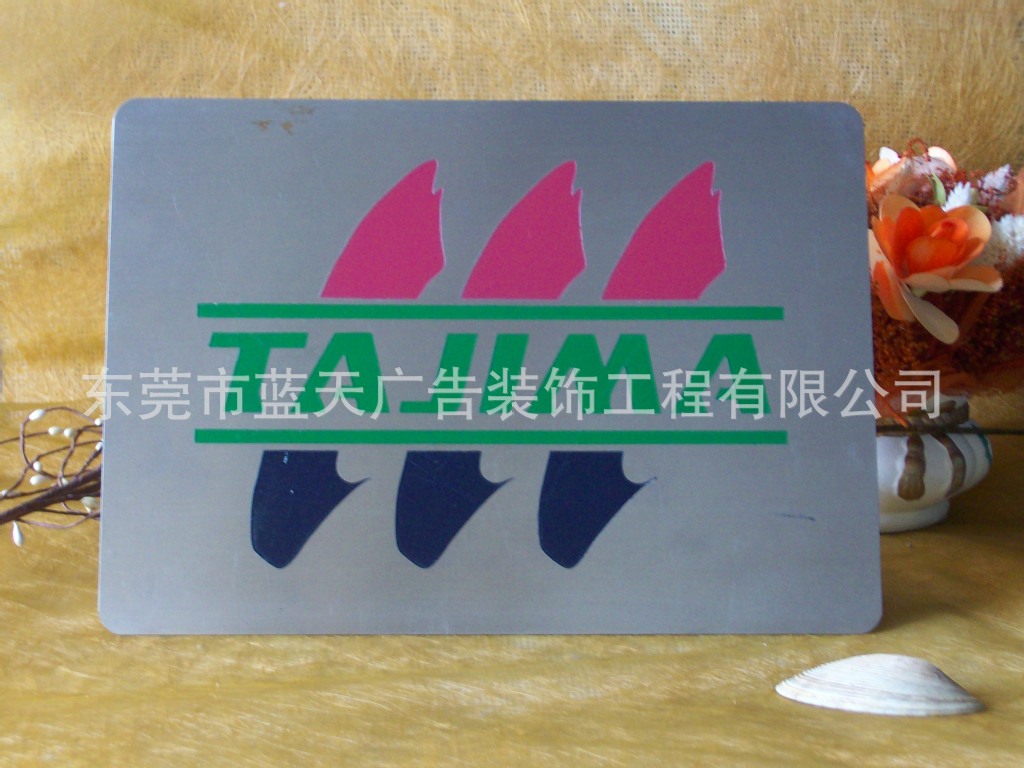 用不锈钢或钛金蚀刻后上烤漆,经久耐用,美观大方,造价较高。