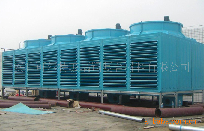 本系列横流式玻璃钢冷却塔采用两侧进风,靠顶部的风机,使空气经由塔两侧的填料,与热水进行介质交换,湿热空气再排向塔外。填料采用两面有凸点的点波片,通过安装头使点波片粘结成整体,以提高刚性,两面的凸点还可避免直接滴水,因此提高了水膜形成能力,填料尾部设有收水措施。 产品特长: 1、节省空间,结构轻型化 采用专为本系列冷却塔设计的高效热交换填料,其换热面积大幅度提高,与原HBLD系列及原HBLCD系列相比,其占地面积大幅度下降,由于结构设计的优化及采用钢结构,运转重量也大大降低。 2、节省电力 采用通风阻力小的填料和由清华大学专为冷却塔设计的机翼型玻璃钢高效风机,从而减小所配用的电机功率,超低噪声型采用的电机功率更小,更节省电力,也可根据用户的要求,配用双速电机来节电。 3、运转噪声极低 采用清华大学专为冷却塔而设计的FRP材质的机翼低噪声轴流式风机和专为冷却塔而设计的低噪声电机,从而降低了冷却塔的运转噪声。超低噪声系列冷却塔的运转噪声更低,全面符合环保要求。若配用双速电机,在夜间低速运行时,还能使噪声再下降2-3dB(A),用户需要双速电机应在订货时单独提出要求。 4、良好的耐腐蚀性 塔体、水槽及面板均采用具有良好耐腐蚀性能的FRP材质,并在胶衣树脂中加有光稳定剂,具有良好的抗老化性能,经久不变色。塔体钢结构件在加工后采用镀锌处理,提高冷却塔的耐腐蚀性能,在正常使用寿命内,不需另外防腐。 5、组合方便 可采用组合方式来满足不同工况的要求,用户也可根据场地情况进行决定组合,并可根据用户的建筑物特点,调整冷却塔的外观。如用户场地十分有限。我公司也可针对用户的特殊要求进行设计,满足用户对热力性能及噪声的要求。 6、维护方便 本系列冷却塔为组合式设计,相邻冷却塔空气室相互隔开,可在冷却塔正常运转的前提下,进行维护检修,清洗填料、积水管和水箱的工作更加方便。 产品结构: (1)面板:玻璃钢材质,表面光洁美观,耐腐蚀,防老化。 (2)填料:为改性聚氯乙烯双向点波片,热力性能好,气流阻力小,刚性好,耐热75℃、耐寒、阻燃。 (3)风机:叶片材质为合金铝板。风机气动力合理、风量大、效率高、噪声低、耐腐蚀等特点。 (4)电机和减速机:为外协设备。 (5)布水槽:玻璃钢材质,配水均匀,超低噪声型有盖板可蔽光,防杂物飞入,减少溅水声。 (6)消声罩:玻璃钢材质,内粘空腔式阻燃型聚氯乙烯薄膜消声材料。 (7)百叶窗:玻璃钢材质,可防水溅出,并可使进塔气流均匀。 (8)水箱:玻璃钢材质,起集水作用,设有自动补充水设施,可闭路循环直接吸水。 (9)骨架:为折边型钢组装结构,刚性好,重量轻,运输、安装方便,热镀锌防腐 。 一、产品简介横流式玻璃钢冷却塔采用两侧进风,靠顶部的风机,使空气经由塔两侧的填料,与热水进行气热交换,湿热空气再排向塔外。填料采用两面有凸点的点波片,通过安装头使点波片粘结成整体,以提高刚性,两面的凸点还可避免直接滴水,因此提高了水膜形成能力,填料尾部设有收水措施。