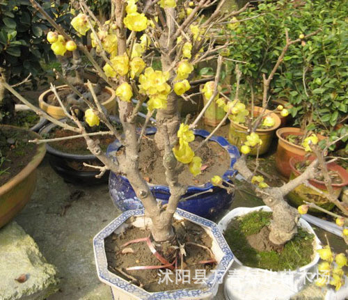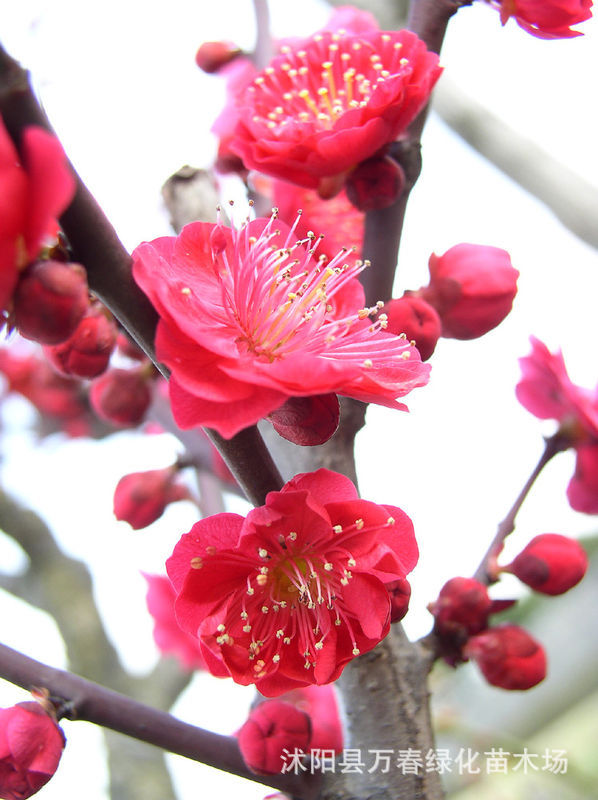 迎春、木槿、红梅、绿梅、梅花,腊梅,垂梅、贴梗海棠、垂丝海棠、麻叶绣球、