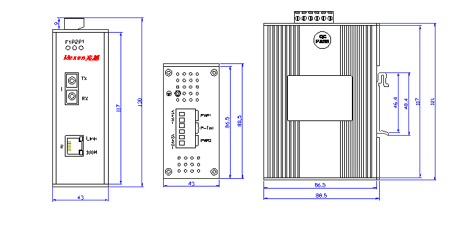 铝合金型材小机壳设计外观小巧,尺寸大小(宽×高×深mm):43×117×86.5mm