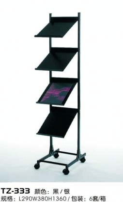 资料架的规格是510*380*1360的,黑色铁板,这款每层可展示两本A4大小的资料,