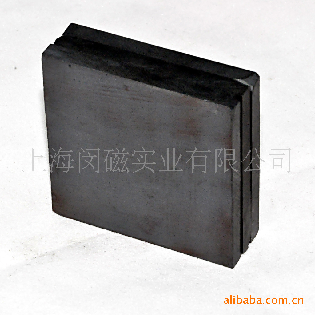 铁氧体(ferrites) 铁氧体是一种非金属磁性材料,又叫铁淦氧。它是由三氧化二铁和一种或几种其他金属氧化物(例如:氧化镍、氧化锌、氧化锰、氧化镁、氧化钡、氧化锶等)配制烧结而成。它的相对磁导率可高达几千,电阻率是金属的1011倍,涡流损耗小,适合于制作高频电磁器件。铁氧体有硬磁、软磁、矩磁、旋磁和压磁五类。 旧称铁淦氧磁物或铁淦氧,其生产过程和外观类似陶瓷,因而也称为磁性瓷。铁氧体是铁和其他一种或多种适当的金属元素的复合氧化物。性质属于半导体,通常作为磁性介质应用,铁氧体磁性材料与金属或合金磁性材料之间最重要的区别在于导电性。通常前者的电阻率为102~108Ω·cm,而后者只有10-6~10-4Ω·cm