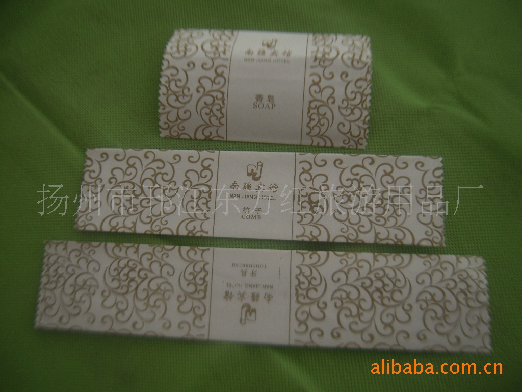 此外,还有其他客房一次性用品,主要包括牙具、香皂、梳子、洗发液、淋浴液、护发素、润肤露、拖鞋、浴帽、擦鞋器、针线包、袋泡茶、圆珠笔、夹纸笔、剃须刀、棉签、指甲锉、口杯套、吸水杯垫、杯盖、火柴、洗衣袋、购物袋、托盘、垃圾桶、服务指南、调酒棒、标牌等高级宾馆、酒店用品。颜色、尺寸、店徽、按照客户要求生产。每个品种的各个样式可以按照客户要求生产.