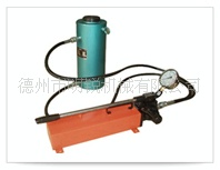 SYB-3,4型手动泵是由轴向柱塞泵、组合阀、油箱等组成的一种小型液压泵站。它具有压力高、体积小、操作方便等特点,特别适用于野外电源条件下作业。该泵可作为耐压试验泵用,当配备油缸或专用机具后可以进行起重、弯曲、调直‘压型、剪切、装卸等作业。