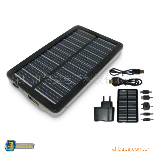 本产品是一款多功能太阳能充电器,内置1500mAH高容量聚合物可充电锂电池,可随时随地对您的手机、PDA、MP3、MP4、数码相机、PSP游戏机、iPhone、Blackberry、、GPS、蓝牙耳机、IPOD等数码产品进行充电。造型精致小巧、携带方便、时尚高雅。 适用于任何可以接触阳光的场合,实现高效率充电 ,使用方便、安全、环保,节约能源 。