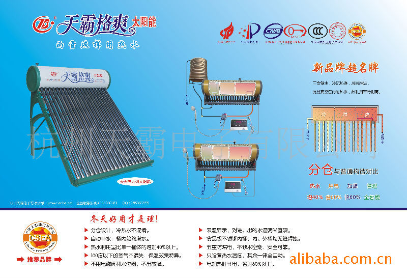 发明专利 独家首创 目前太阳能行业生产厂家和品牌烦多,其中也不排除鱼目混珠者。选择更高效、更节能、更安全、更可靠、性价比更高的才是明智。天霸格爽太阳能热水器是获得国家多项发明和实用新型专利产品,发明专利--利国利民,实用新型--实用实惠。本公司开发能力强、实力厚、二十年的老牌企业,信誉好,消费者可放心选购。