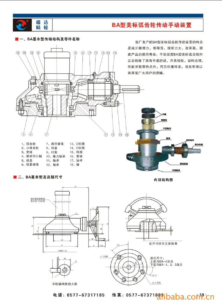 我厂生产的BA型美标弧齿轮传动装置的特点是减少摩擦力,低噪音,扭矩力大,效率高,提高产品的使用寿命.搬运装置BA型美标弧齿轮和正齿轮除了具有手感舒适,开关轻松,结构合理,性能灵敏等特点外,而且价廉物美,投放市场以来深受广大用户青睐.