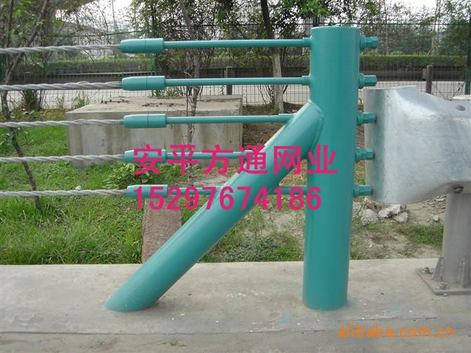 本产品的设计依据中华人民共和国行业标准JTJ074-94<高速公路交通安全设施设计及施工技术规范>1.各级缆索护栏的端部立柱、中间端部立柱、中间立柱都采用了《普通碳素结构钢》(GB700-88)中有关Q235的机械性能的规定。立柱采用焊接低硬钢管。2.索端锚具采用了45号优质碳素结构钢制造,其机械性符合《优质碳素结构钢技术条件》(GB699-88)的规定。缆索护栏采用了钢丝绳的表面防腐处理,采用单丝进行热浸镀锌的办法,符合《镀锌钢绞线》(GB1200-88)的规定。缆索护栏分为浸塑B型(普通型),浸塑A型(加强型),热镀锌B型(普通型),热镀锌A型(加强型);我公司生产的缆索护栏较以往,“双波型钢板护栏”相比,柔韧性加强,高度增加,防撞性能更佳。此外,通透性更好的缆索护栏将更有利于游客欣赏自然景观。经检测,小型车每小时100公里和大型车每小时60公里速度,均在护栏安全防撞范围内。主要用途:高速公路,铁路以及桥梁两侧的防护带;机场,港口,码头的安全防护;高速公路、山地和旅游景区道路安全防护。产品特性:与传统护栏相比,具有永不锈蚀、耐柔软性好,抗冲击力强,耐雪载、耐风载能力大等特点。优点一:预防二次伤害,减少驾驶员和乘车人员生命安全事故。优点二:驾驶员视野透空率比较高,减少驾驶员眼睛疲劳。