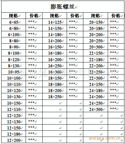 本公司所提供的膨胀螺丝尺寸大小参数如下: