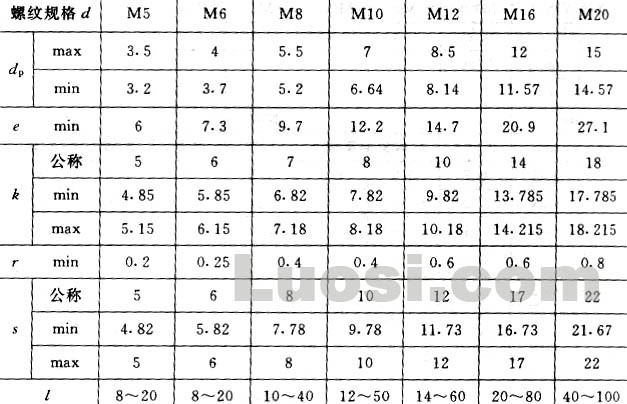 本公司所提供的GB821方头紧定螺钉尺寸大小参数如下: