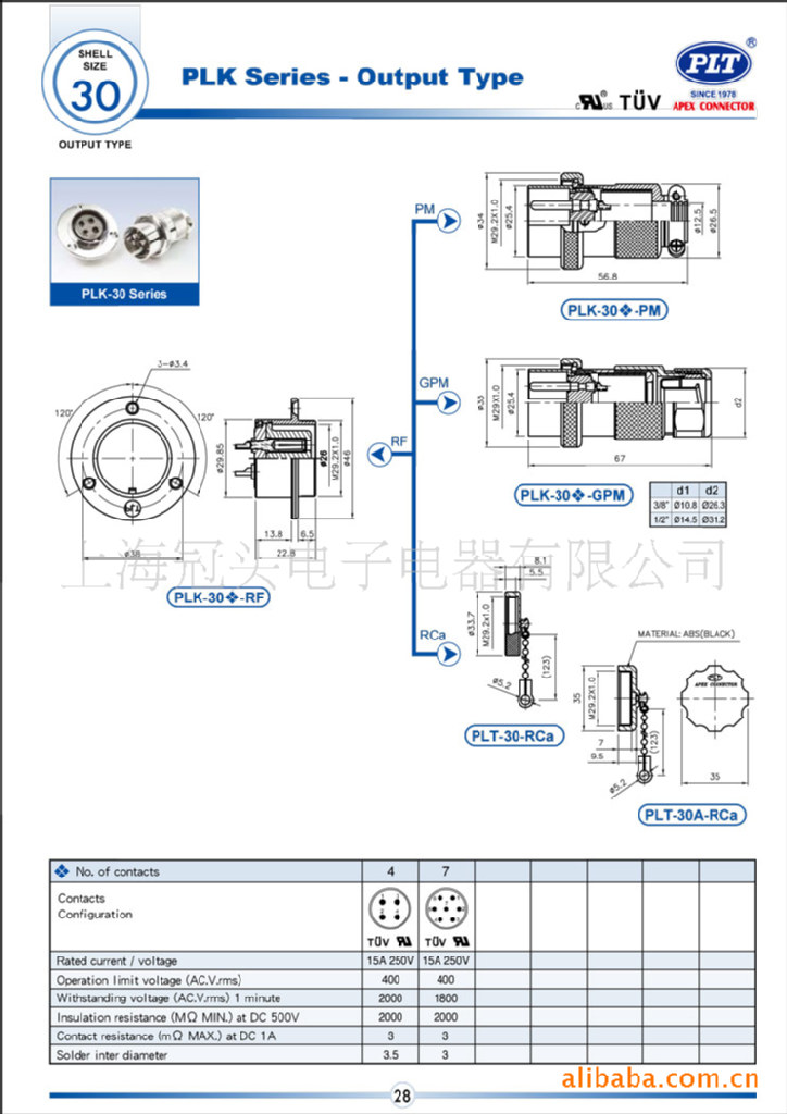 正品 PLT錩钢 PLK-30系列 航空插头 工业插头