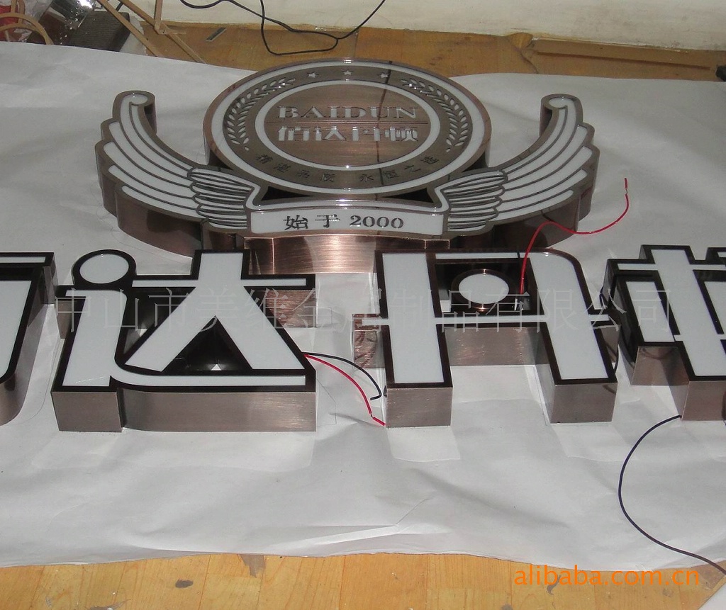 本公司是一家专业制作高档不锈钢字.烤漆字.LED.发光字.镀金字.铝字.实心铜字.拉丝不锈钢字.实心字.镀金字.太金字.LED树脂发光字.品牌门头字.连锁店门头字.公司LOGO标识.石头字.各类制作完全达到香港字标准及安全.环保要求.本公司位于伟人故居和谐的广东省中山市.我们始终把客户的利益放在首位,把你的满意当成我们的目标.深信质量是生产之本,信誉乃发展之道.欢迎新老客户来电.来图咨询!