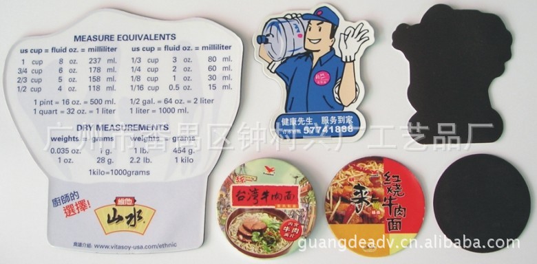 本厂主要以PVC软磁,软磁,EVA,纸,PP胶片等材质为主加工订做各种广告礼品,促销赠品.主要产品有:PVC钥匙扣,PVC杯垫,PVC相框,PVC手机绳,PVC行李吊牌;磁性电话本,磁性飞镖,磁性拼图,磁性书签,磁性相框,磁性写字板,磁性冰箱贴;各种材质鼠标垫,吸水纸杯垫,软木杯垫,中纤板杯垫等等.所有产品完全根据客人要求开模订做,可把企业广告做在上面,适用于企业广告促销.