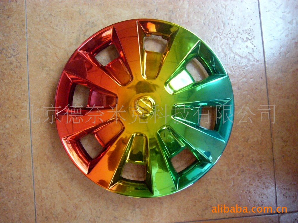 1、 工艺原理:采用专用的设备和特定的原料,应用化学反应原理通过直接喷涂的方式达到电镀精饰的效果,使被喷物体现面呈现铬色、镍色、沙镍、金、银、铜及各种彩色(红黄蓝绿)渐变色等镜面高光效果和亚光、半亚光效果。