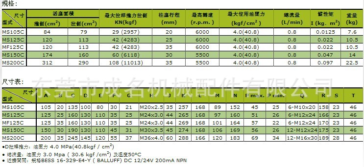 中实油压回转缸(含逆止阀):MS105. MS125. MS150.